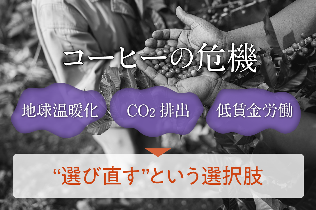 近年、地球温暖化の影響により、世界各地でコーヒー栽培が困難になっています。さらに、大量生産を支えるために排出されるCO₂や、低賃金労働といった社会的課題も深刻です。